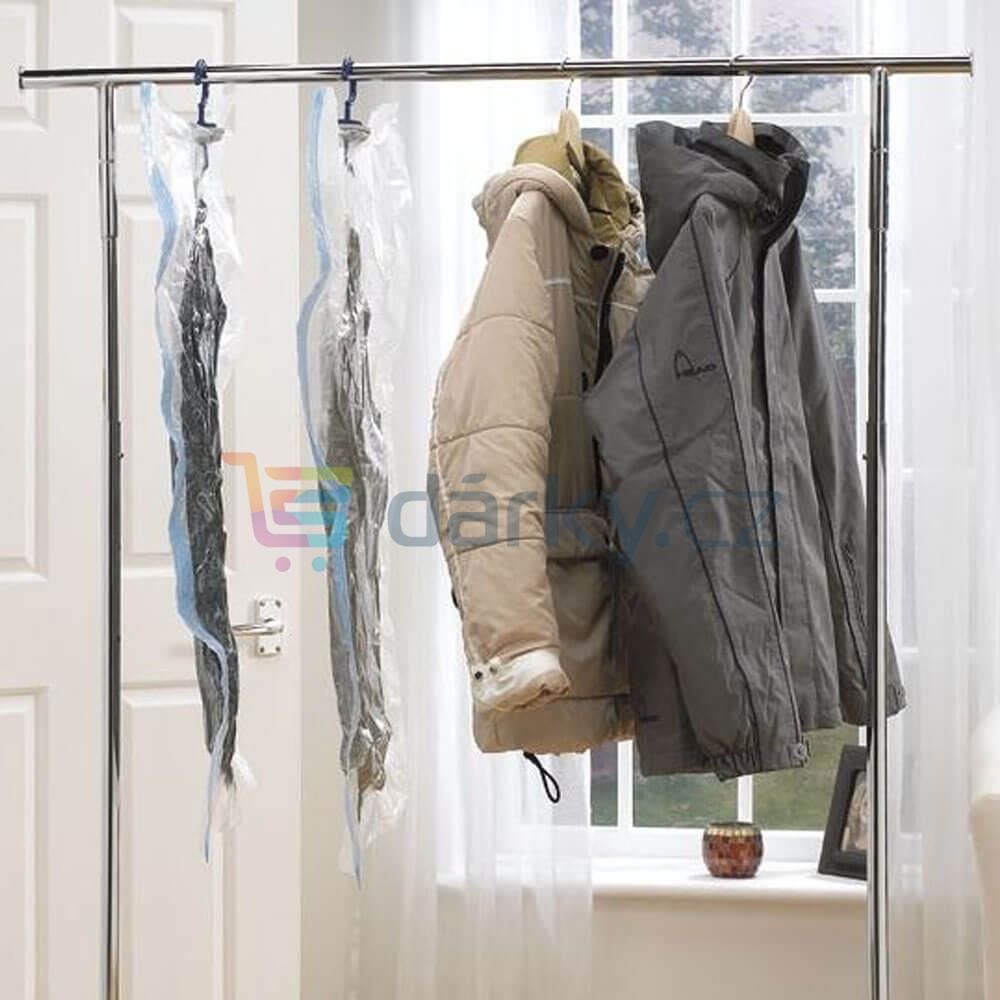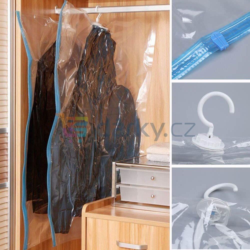 S vakuovým pytlem lze ušetřit spoustu místa. Je vhodný na zimní oblečení, svetry, bundy, ale například i na zrovna nevyužívané lůžkoviny. Pytel představuje okamžité řešení pro všechny, kdo mají ve skříni chaos a rádi by uspořádali sezonní oblečení. Výhodou pytle je očko podobné jako na šatním ramínku, díky kterému jej můžete umístit na závěsnou tyč do skříně.